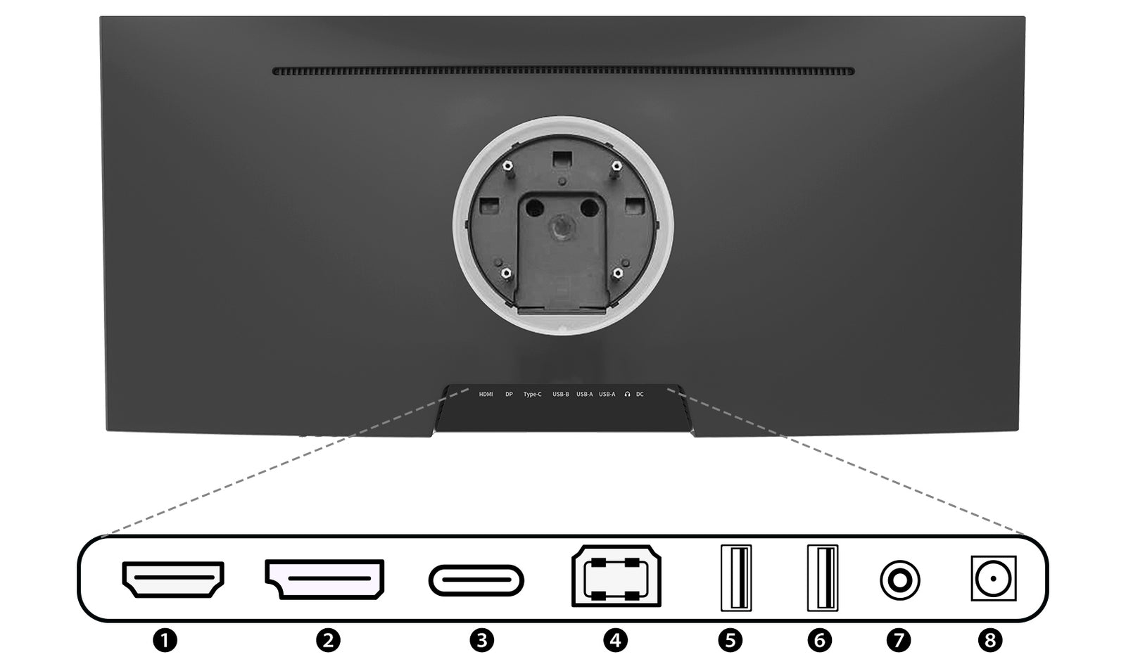 ③USB-C : (2560x1080) @100Hz 最大65W給電