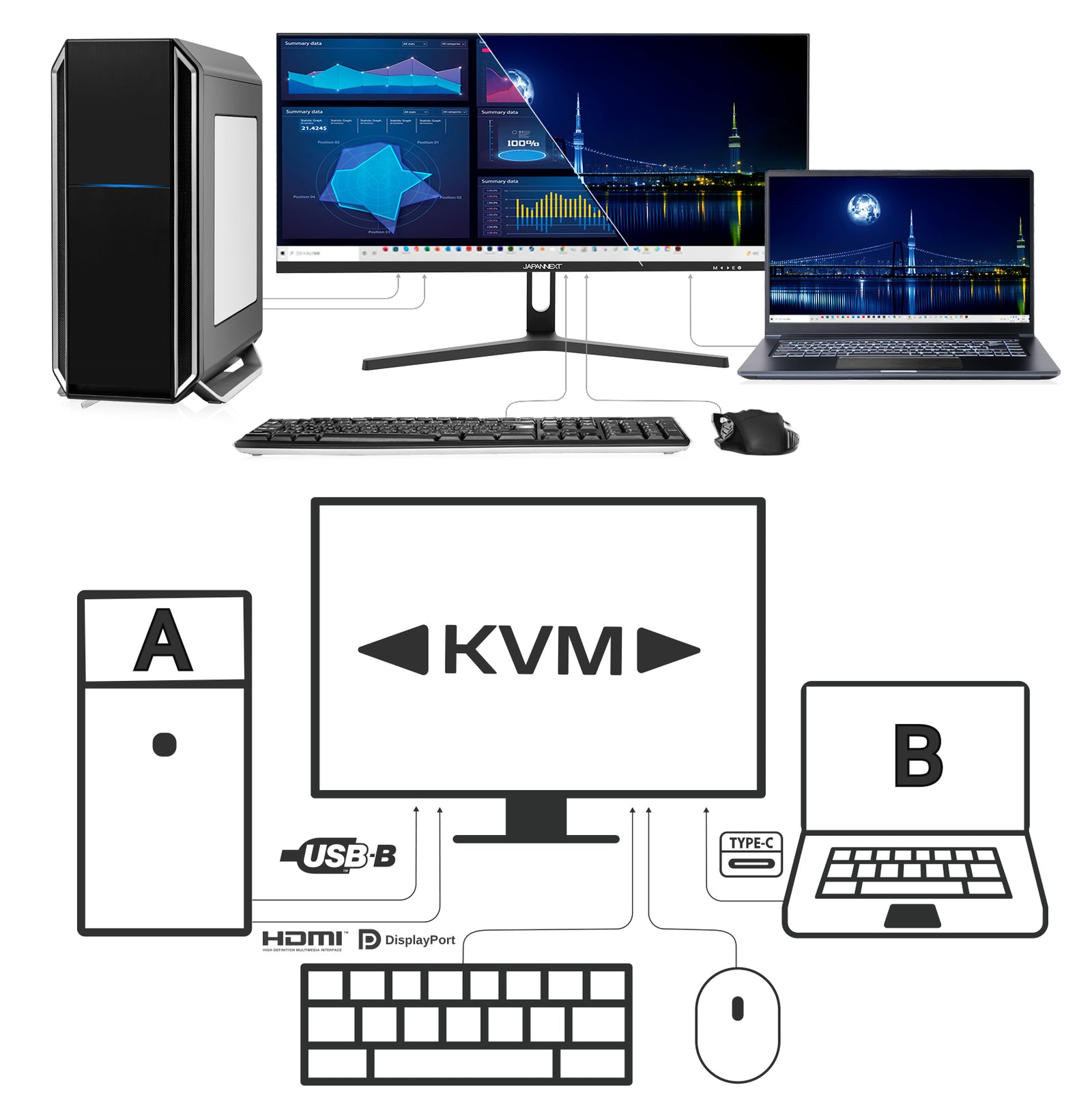 この機種はKVM機能があるので、